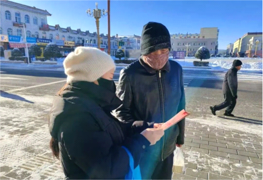 活动现场,呼玛镇长虹社区在人民广场设立宣传点,普法志愿者们通过发放普法宣传资料、现场答疑等方式,向广大群众宣传《中华人民共和国宪法》《民法典》《中华人民共和国国家安全法》等,部分志愿者还走进小区,敲开居民家门开展“一对一”普法宣讲,耐心地答疑解惑,将法送到群众身边,送进群众心里。当天共计发放宣传单300余份,提供法律咨询20余人次。